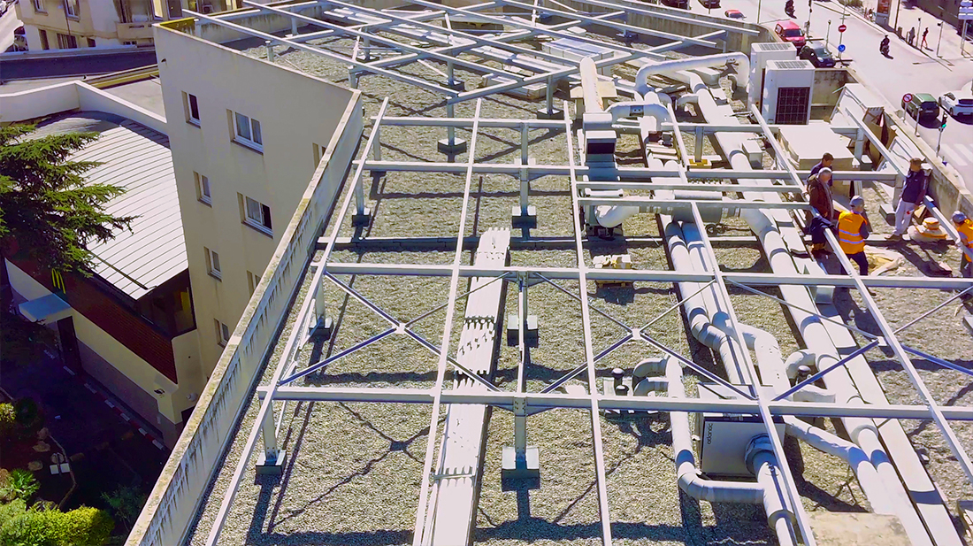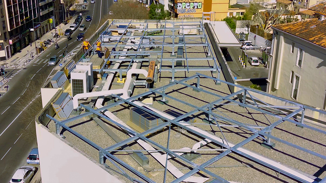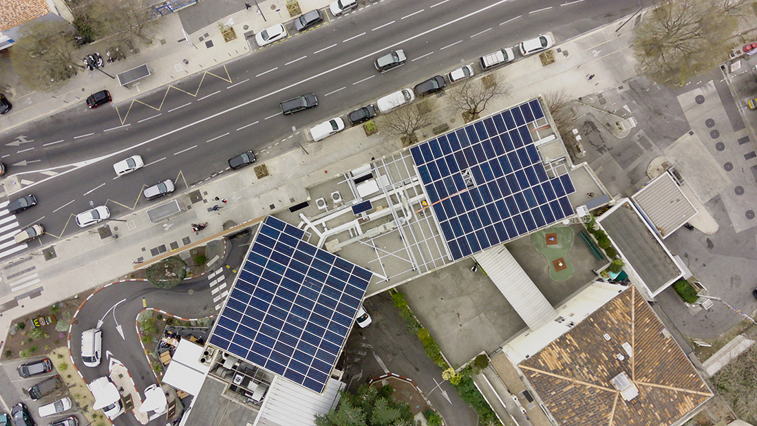 l’installation de 2 ombrières couvrant l’ensemble de la toiture plate de 500m², couverte de 80kW de panneaux pour autoconsommation et ainsi contribuer à réduire jusqu’à 35% leur facture d’électricité.