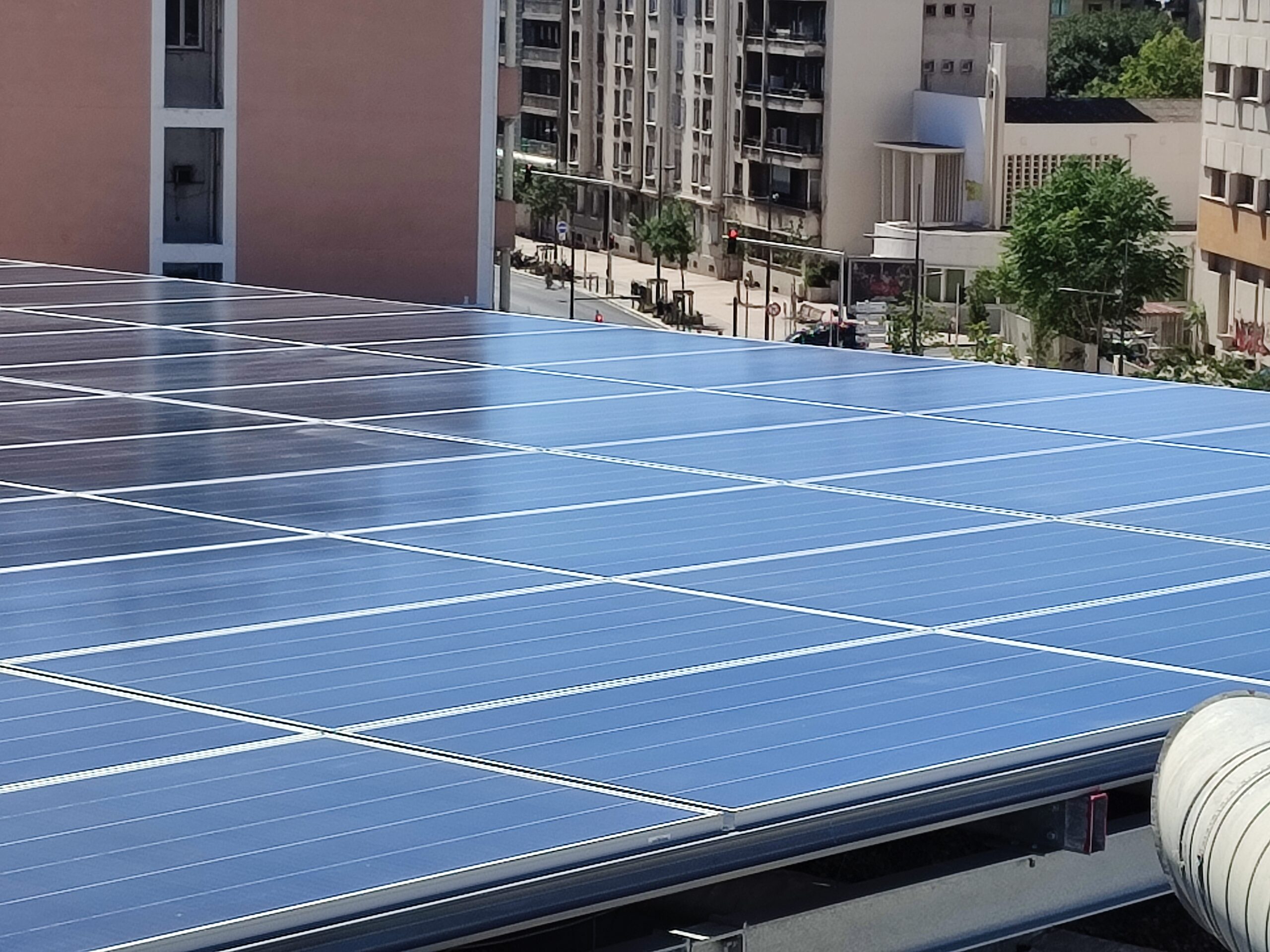 80kW pour auto-consommation, sur ossatures acier et plots bétons